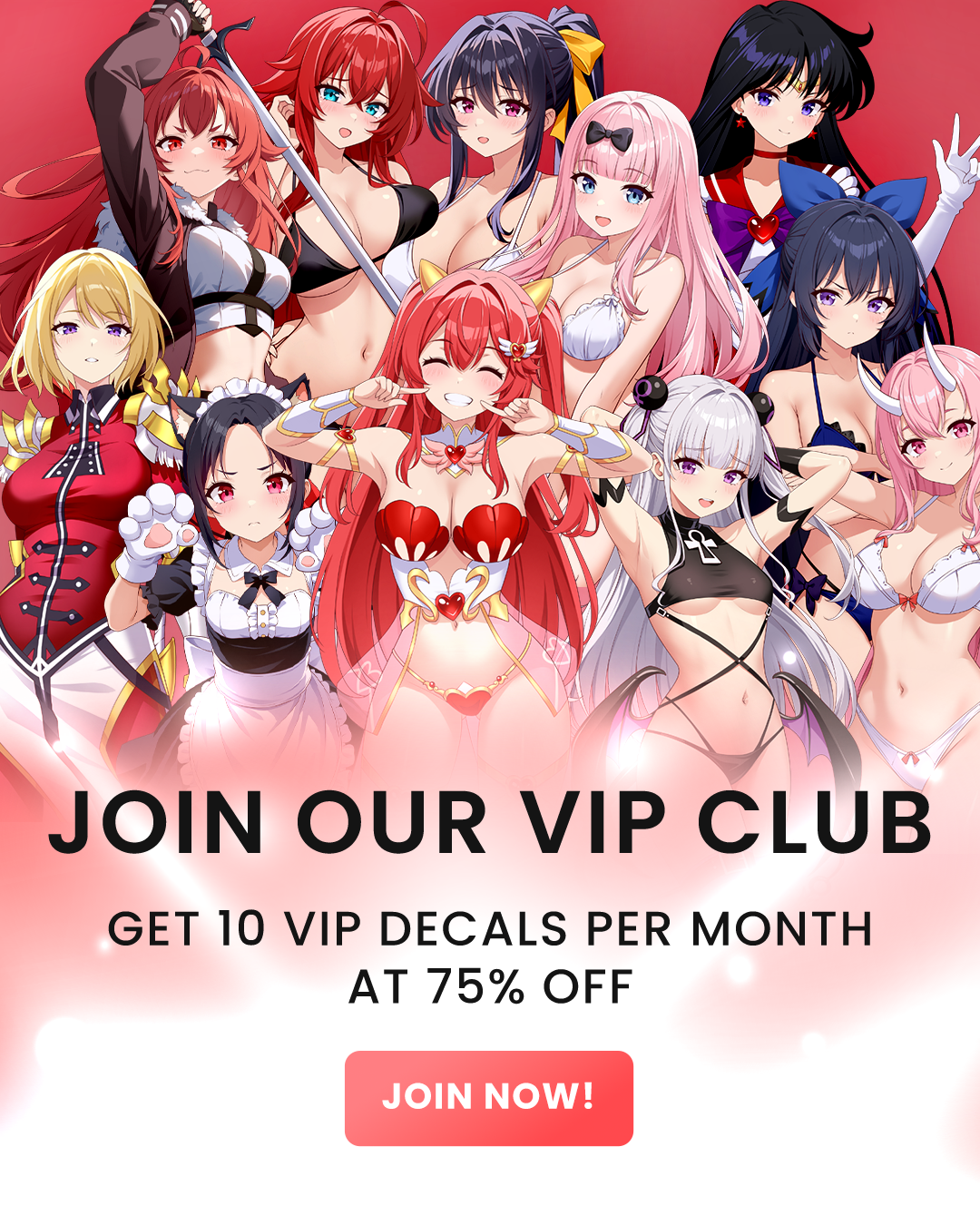 Awesome high quality stickers! And they have fun themed deals that are really hard to turn down. I've decorated my PC and cars with stickers from waifuclub.